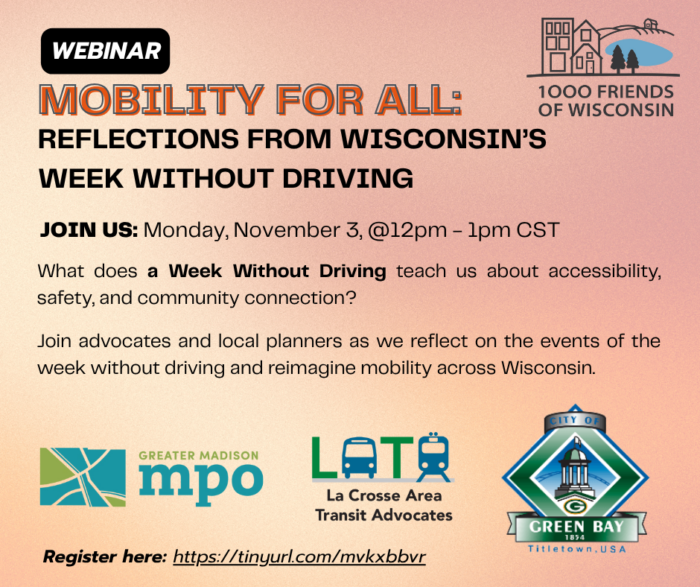 Join us for Mobility for All, Reflections from Wisconsin’s Week Without Driving on Monday, November 3rd at 12pm CST