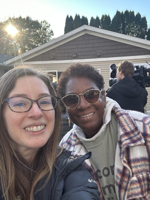 Jen Walker of 1000 Friends of Wisconsin, and Sharon Johnson, Lead Organizer with Madison for More Neighbors, attend the ribbon-cutting